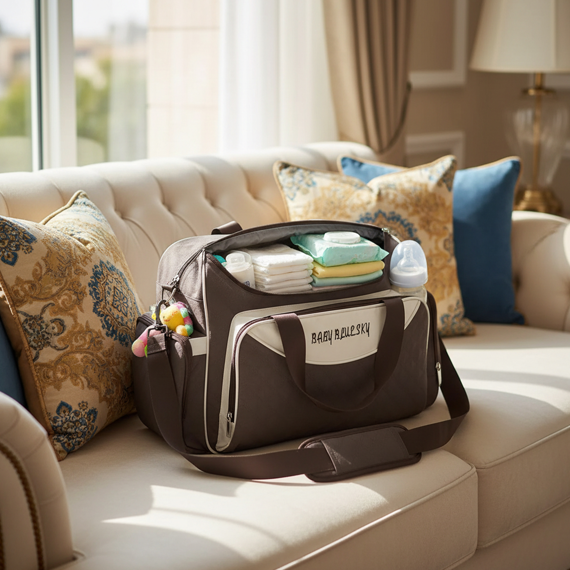 عدة جيوب لتنظيم الحفاضات والزجاجات والمناديل بسهولة