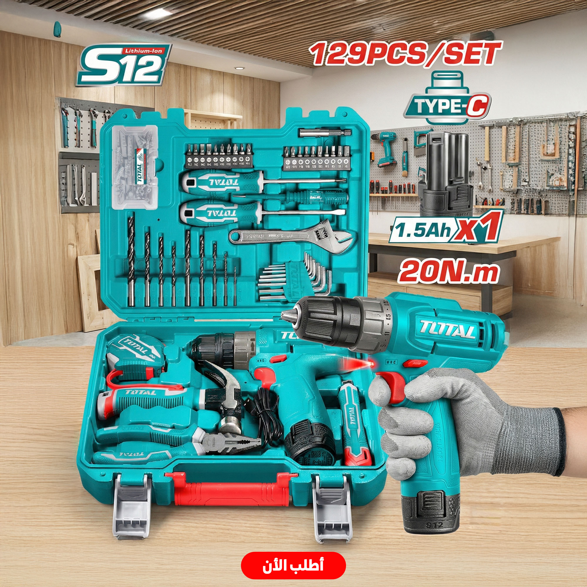 🔧💙 طقم شنيور وعدّة 129 قطعة من TOTAL – الشغلانة في إيدك!